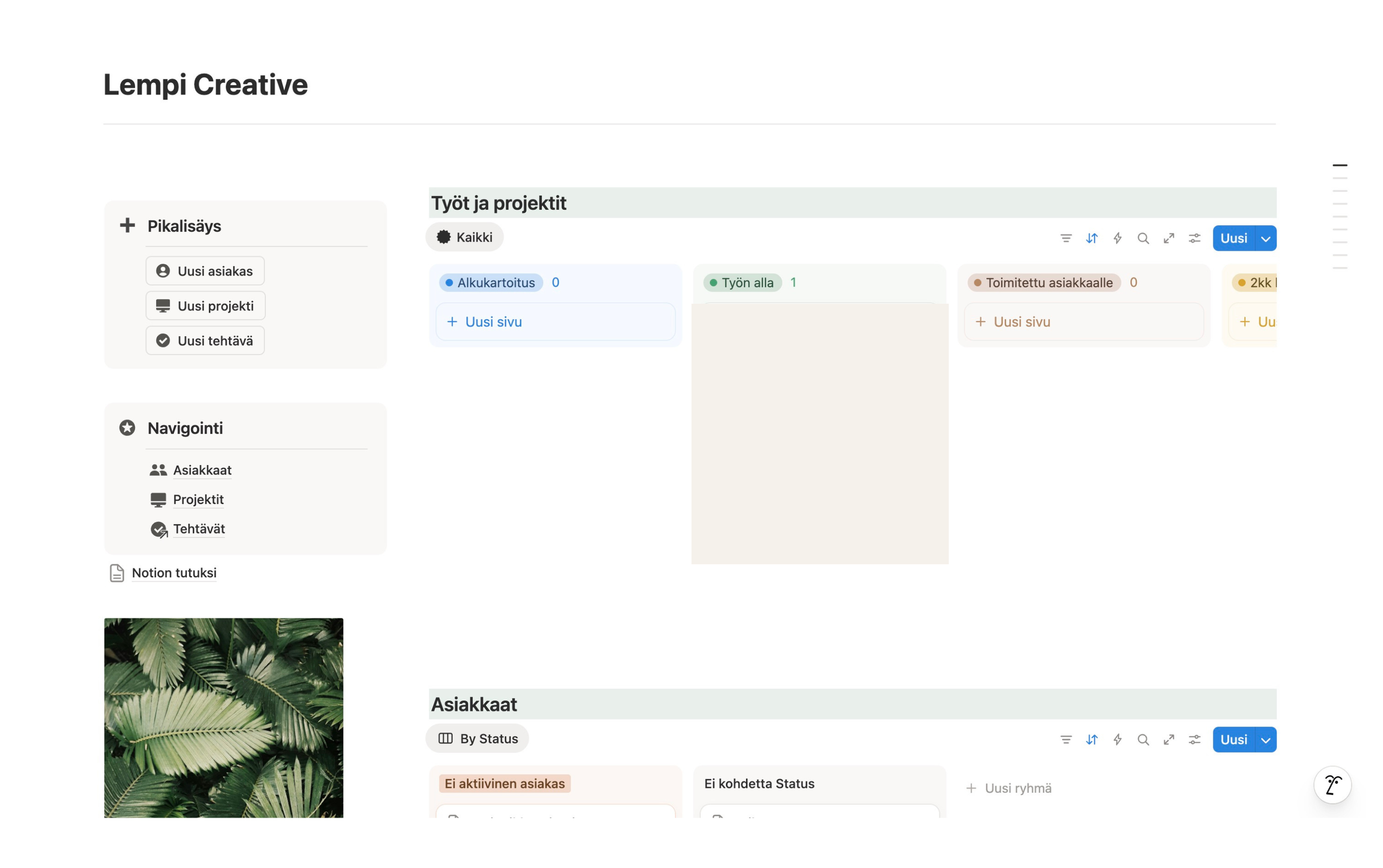 Mahtavaa! Kerro mulle hiukan itsestäsi ja tarpeistasi, ja aloitetaan yhdessä sun Notion-matka!